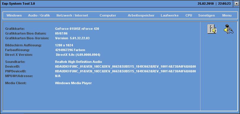 Sie bekommen die verschidensten Informationen über Ihren Computer wie z.B:
