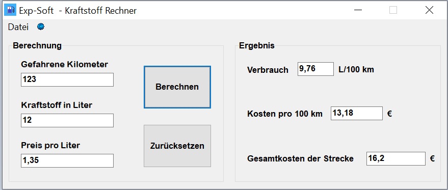 Mit diesem Programm können Sie Ihre Kraftstoff-Kosten im Auge behalten und diese kinderleicht berechnen lassen. Nie wieder überlegen wie man diese